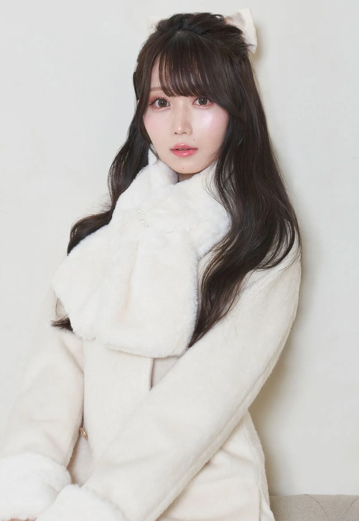 カフスとお揃い生地で仕上げたティペットマフラー付きなのも嬉しいポイント。
