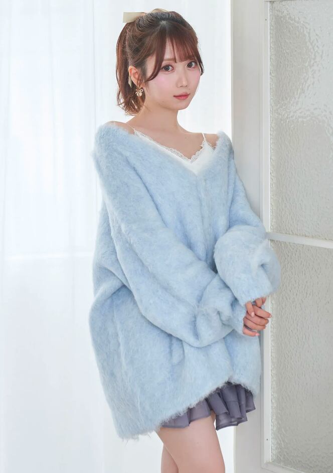 ふわっとした風合いがかわいいビッグシルエットのカーディガン。